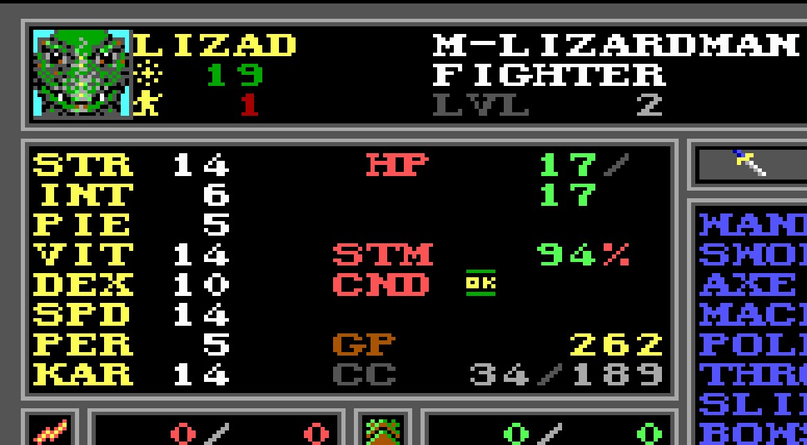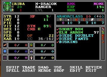 Wizardry6はアイテム管理がけっこうシビアだから、弾薬系は特に気をつけておかないとね。ちなみに、魔法使い系キャラがいるなら、遠距離攻撃は魔法に頼るのも一つの手だよ。