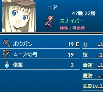 クラスチェンジしましょう。と思ったら、主人公なのに、クラスチェンジもできないんですね。候補は、ニアをスナイパーにしましょう。